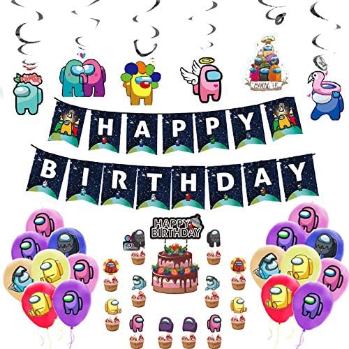 Pomnug Among Game Themed Birthday Party Supplies Among Party Decorations With Happy Birthday Banner Cake Topper Cupcake Toppers Balloons Spiral Ornaments For Kids Boys Adults In Bahrain Uo08ggum7io Binge Bh